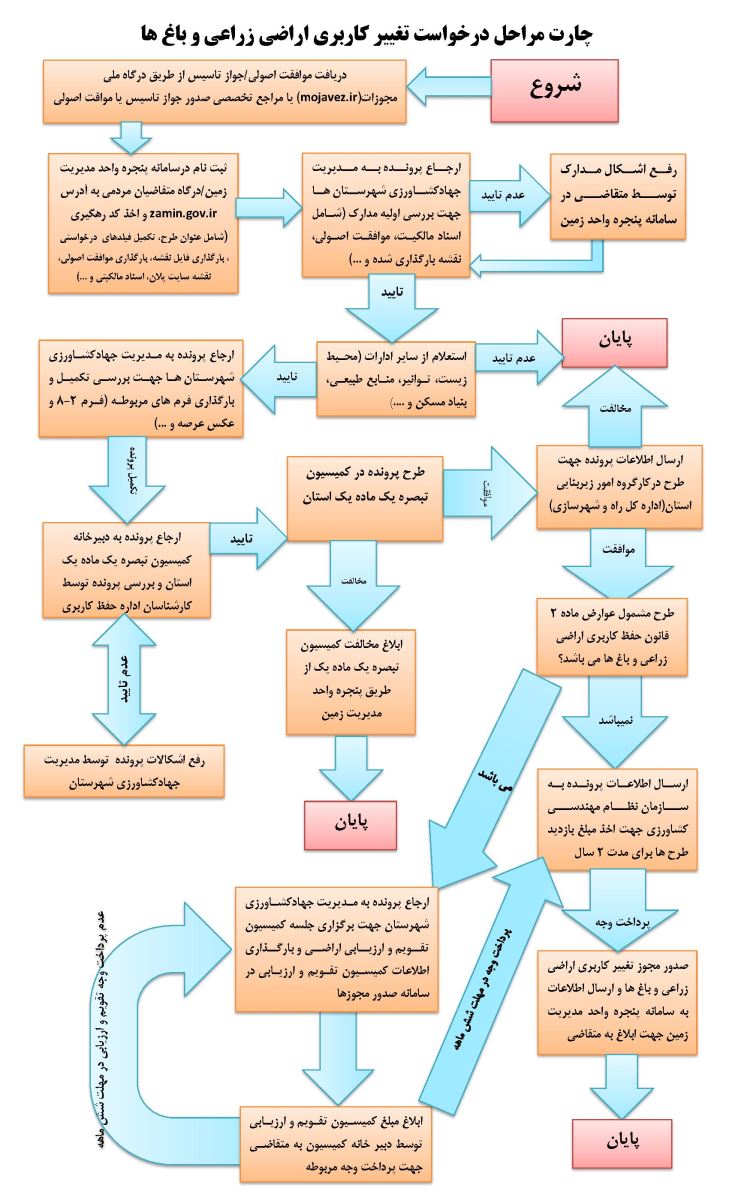 مراحل درخواست تغییر کاربری اراضی زراعی و باغ ها
